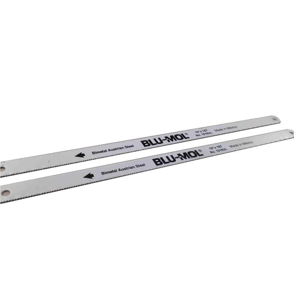 Bi-metal hacksaw blades for heavy duty cutting. Cut medium gauge metals (1/16 in. to 1/4 in.) such as sheet metal, angle iron, bolts, channels, drill rods, threaded rod, pipes and tubing. The blade is shatter resistant.