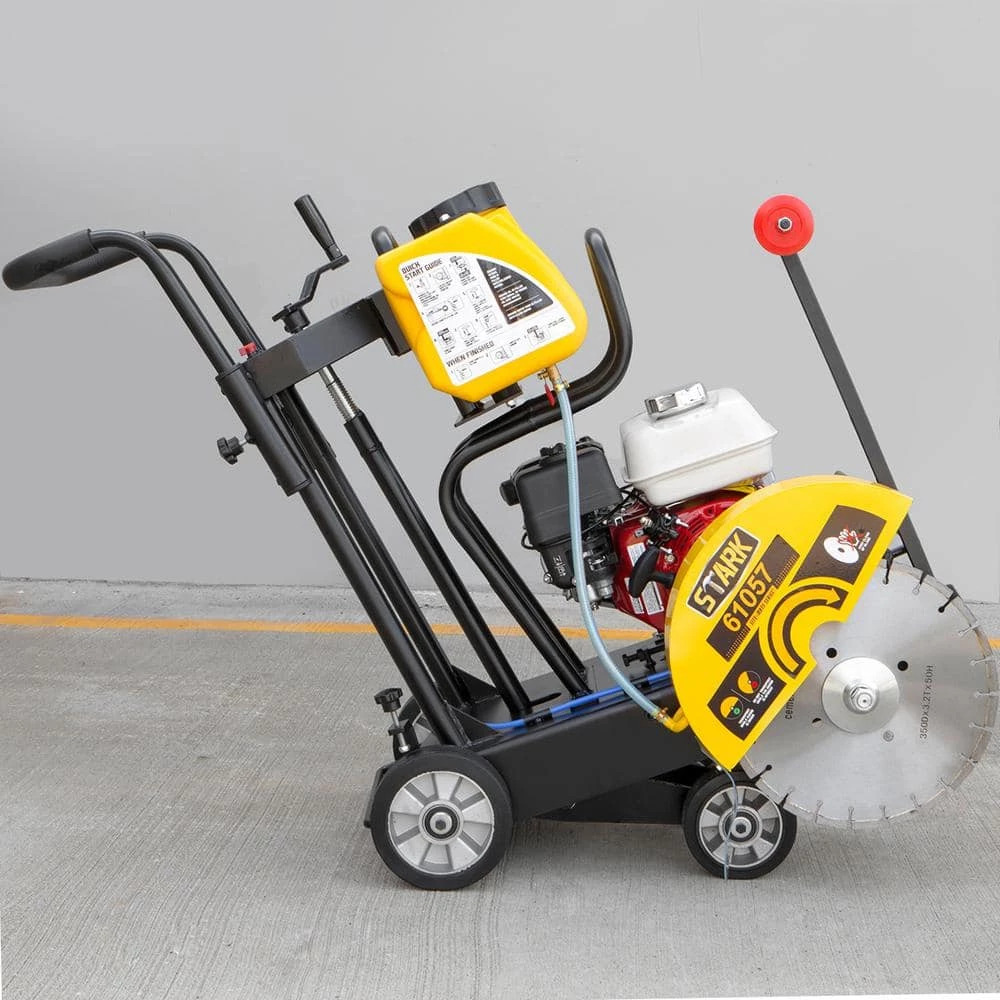 The Stark Walk-Behind Concrete Saw Cutter is the perfect multi-purpose machine used for precision cutting floors, pavements, walkways, ramping’s and other flat sawing applications. This concrete cutter saw is powered by a powerful 5.5 HP Honda GX160 engine to deliver superior power and fuel efficiency. Equipped with a large capacity water tank system to provide optimal water distribution for both sides of blades. This allows the walk-behind concrete saw to cut with precision along a horizontal plane with the blades primed for cutting. The anti-vibration system of this power-driven cutter will prevent vibration when cutting from affecting the frame, cutting device and handle. Designed to be lightweight and ergonomic, this concrete cutter saw greatly reduces the working strength of the operator compared to older walk-behind models. This lightweight walk-behind concrete saw is for small to medium jobs that require dependable power and portability. Suitable for flatwork and construction projects, our walk-behind concrete saw-packs plenty of power to let the power tool do the grinding and cutting with non-forced application.