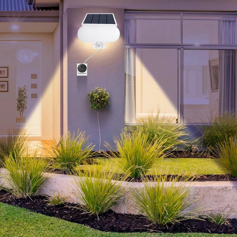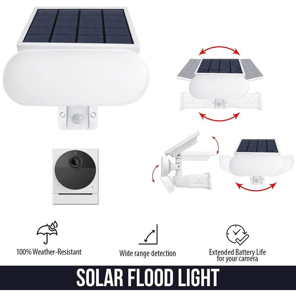 Wasserstein 2-in-1 Solar Panel Charger and Security Light is compatible with Wyze Cam Outdoor. Designed to continuously charge your outdoor security camera with its charging cable. The built-in floodlight provides 400 Lumens of light and works with Wyze Cam Outdoor. It is equipped with a light intensity sensor and a motion sensor that will only turn on in the dark when a motion is detected up to 26 ft. away. This device has an IP64 waterproof rating and is built with high-grade, rugged material making it excellent for outdoor use. Solar Flood Light with 100 percent Weather-Resistant, Wide Range Detection, and Extended Battery Life For Your Camera. Spotlight illuminates night-time security footage for clear color recordings even at night. With spotlight, you can see a clearer recording compared to without spotlight even at night. It is compatible with Wyze Cam Outdoor. It is not compatible with Wyze Cam V2, Wyze Cam V3, and Wyze Cam Pan.