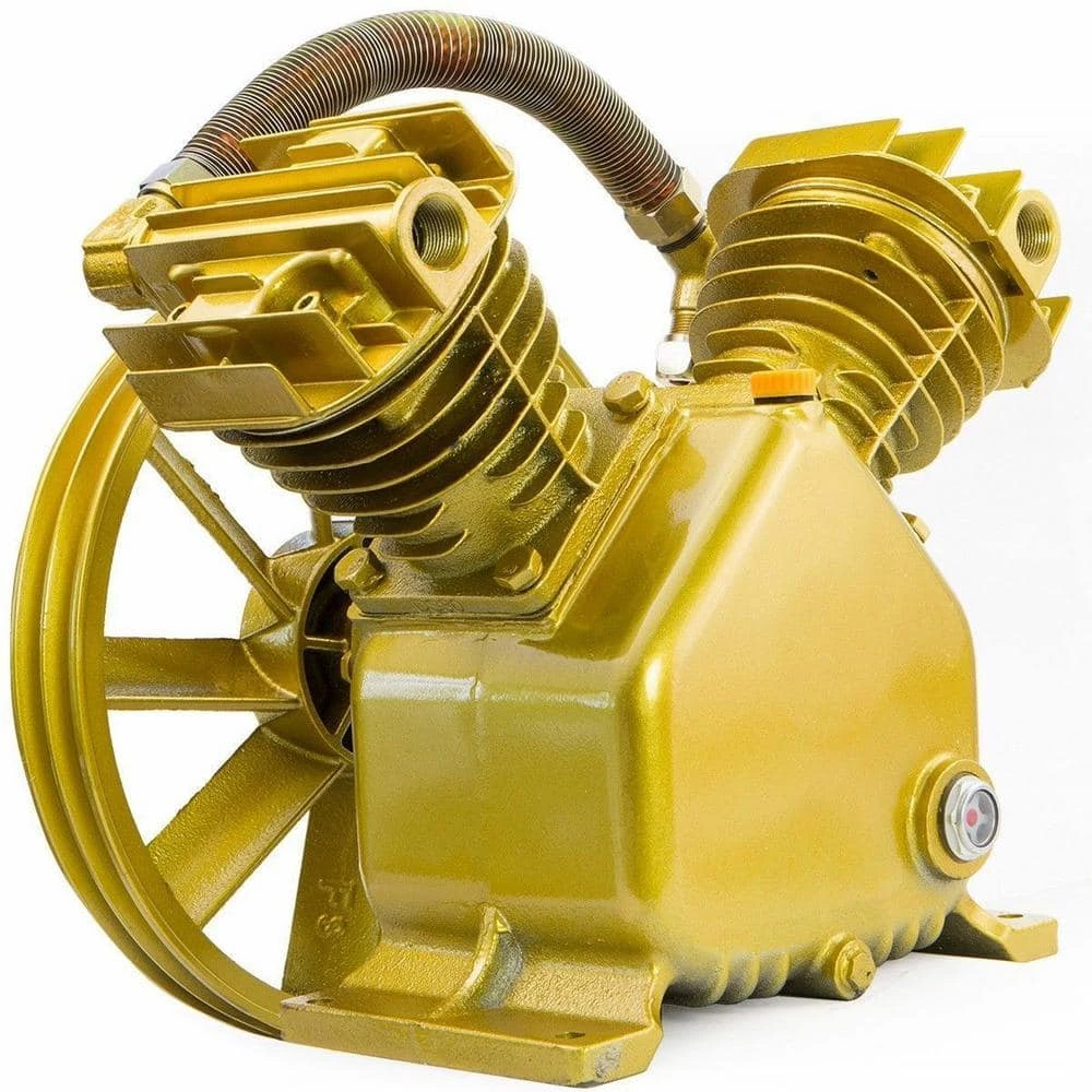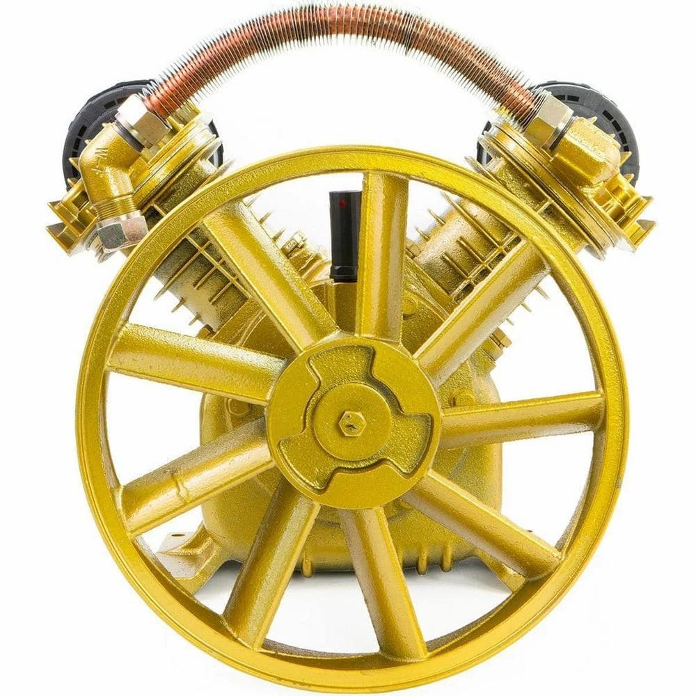 The Stark 5.5 HP V-Type Twin Piston Air Compressor Pump Head is constructed from durable cast iron, built with twin mufflers with 2 high efficiency intake filters and v-style cylinder design to deliver superior cooling, reduced moisture and extended service life, this unit features a proven belt-driven design for best-in class compression and smoother running operation. For both home and industrial applications, this air compressor pump makes for an ideal replacement unit for most 5 to 5.5 HP compressors on the market. High efficiency exhausts, low noise output and smoother operation with less fuel consumption.