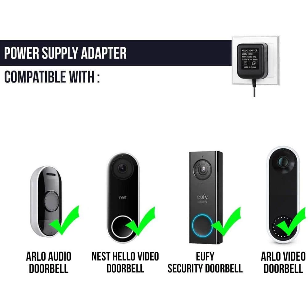 - No messy wiring – the Wasserstein power supply adapter compatible with nest hello video doorbell, eufy security doorbell and Arlo doorbell lets you establish a direct connection between your video doorbell and the electrical outlet without leaving a messy wiring, this power adapter allows your video doorbell to operate at full capacity, with a 1.5 m cable, it can access any electrical outlets in your home