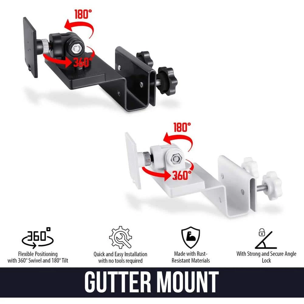 - 1 gutter mount that fits all – the Wasserstein gutter mount works seamlessly with our solar panel compatible with the ring spotlight camera, ring stick up cam, reolink argus pro, reolink argus 2, arlo pro 2, arlo go, arlo light, blink outdoor, blink XT2 and blink XT, it is also compatible with the ring and arlo versions of solar panel