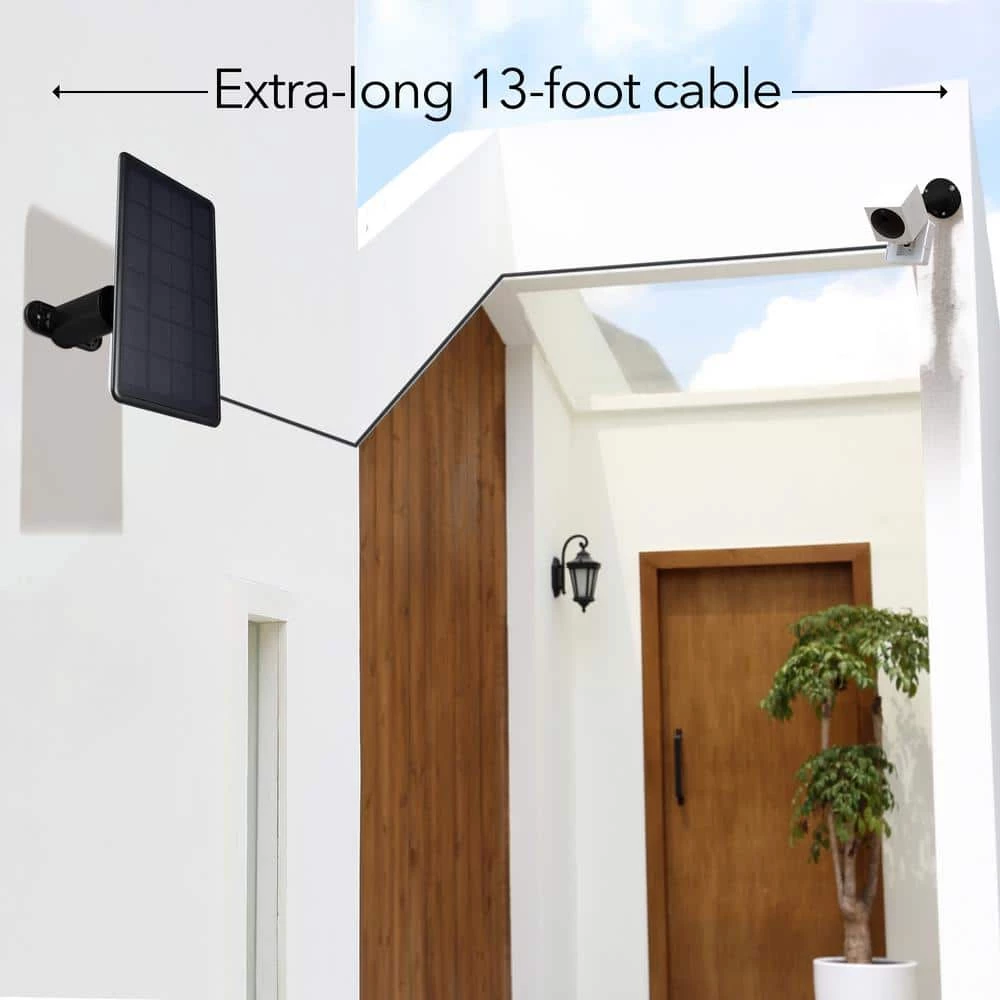 - Extra-long cable – for maximum reach, this security camera wireless outdoor solar panel comes with an extra-long 13 ft. cable – letting you find the best place to put your camera