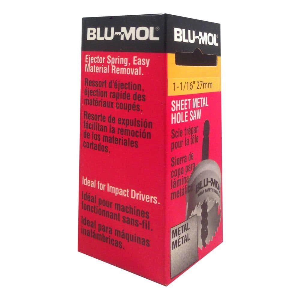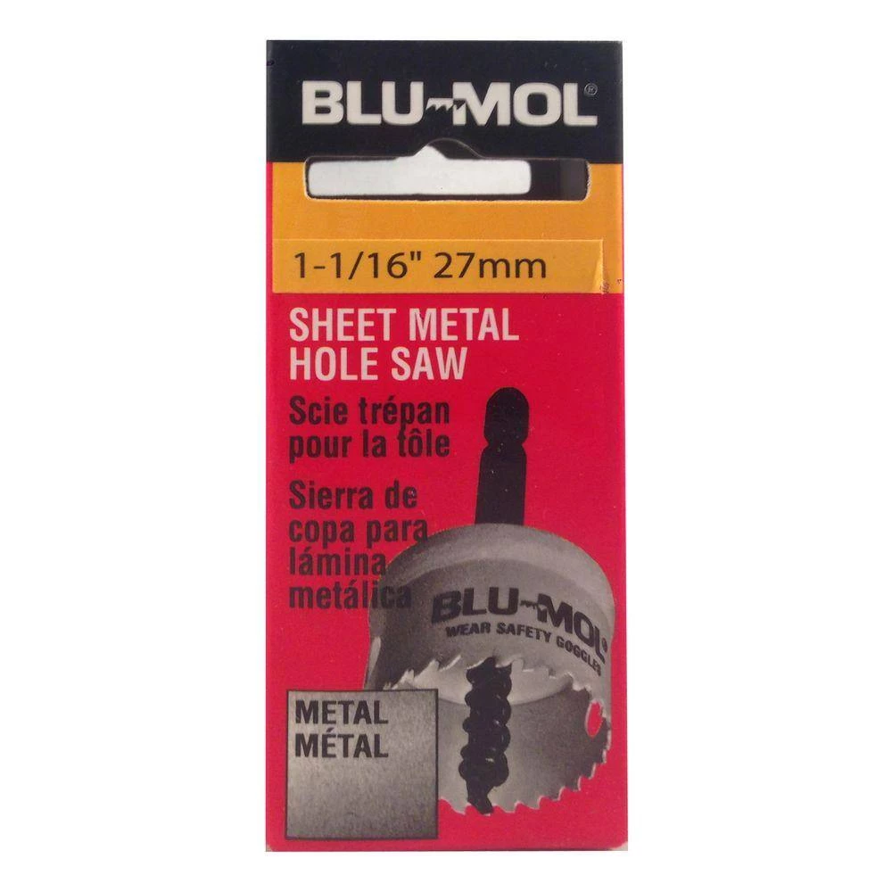 The BLU-MOL Sheet Metal Hole Saw is ideal for the electrical and plumbing tradesman, construction, aircraft, maintenance and automotive applications. The hole saw has a thin 0.02 in. (0.5 mm) sidewall blade thickness, allowing for faster cutting and longer battery life. It’s ideal for chargeable impact drivers. Use in thin applications of mild steel, brass, aluminum, stainless steel or plastic.