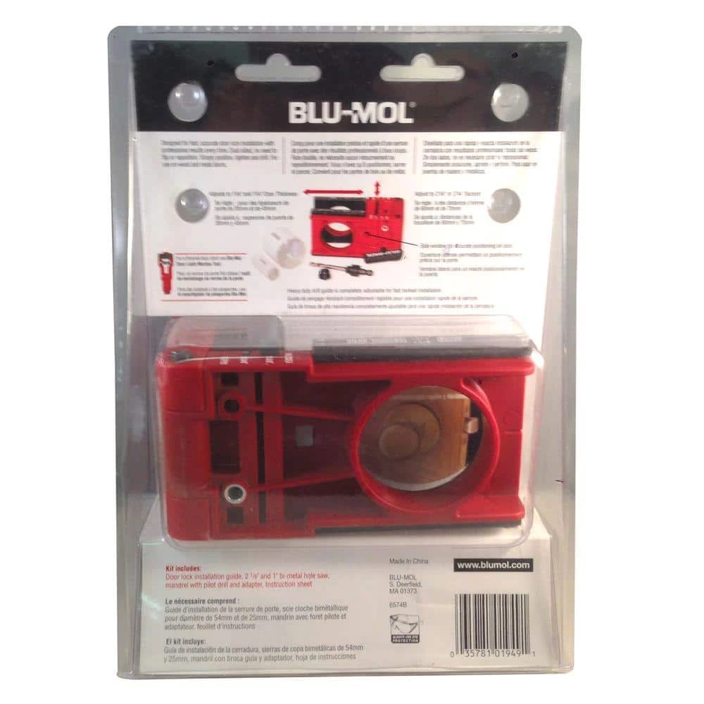 This kit is for use in installing door locks. The BLU-MOL Professional Bi-Metal Lock Installation Kit includes 1 each 1 in. and 2-1/8 in. hole saws, guide, assembled mandrel and mandrel adapter. Door lock installation has never been easier.