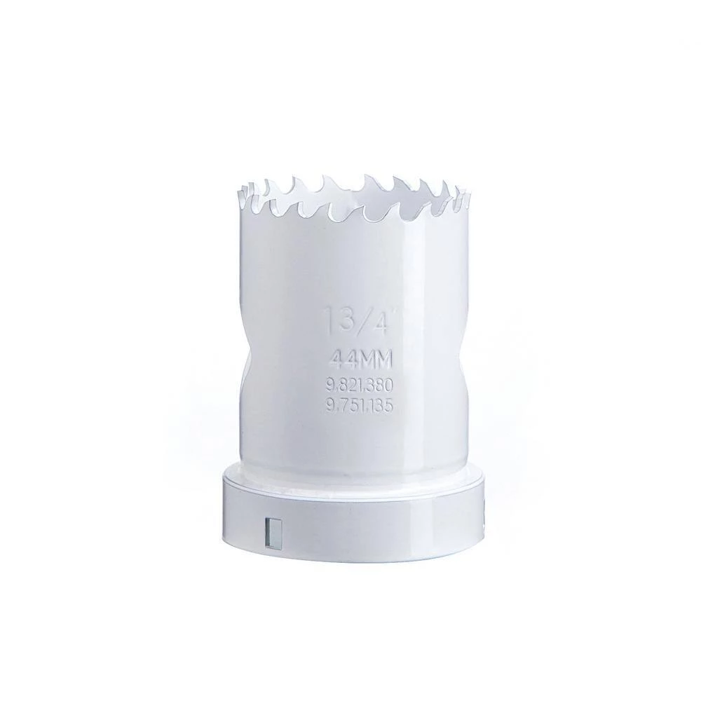 DISSTON BLU-MOL Xtreme QuickCore Hole Saws. Patented hole saw system that has up to 10X faster core ejection. Eliminates the #1 Issue with using a hole saw of core ejection. Quick change sleeve with and open back arbor allows for fast core removal. 1 Mandrel for all sizes. The wide Diamond slot and open back design allow for increase visibility and cooling while cutting. The QuickCore design allows for immediate plug removal with no need for added tools. 1-7/8 in. D of cut and Bi-Metal construction allows for cutting into wood, metal, plastic, and stainless steel. All sizes of hole saws available. Works with BLU-MOL E0100228.