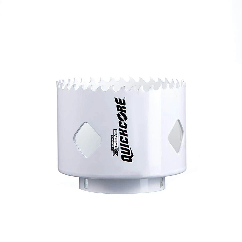 DISSTON BLU-MOL Xtreme QuickCore Hole Saws. Patented hole saw system that has up to 10X faster core ejection. Eliminates the #1 Issue with using a hole saw of core ejection. Quick change sleeve with and open back arbor allows for fast core removal. 1 Mandrel for all sizes. The wide Diamond slot and open back design allow for increase visibility and cooling while cutting. The QuickCore design allows for immediate plug removal with no need for added tools. 1-7/8 in. D of cut and Bi-Metal construction allows for cutting into wood, metal, plastic and stainless steel. All sizes of hole saws available. Works with BLU-MOL E0100228.