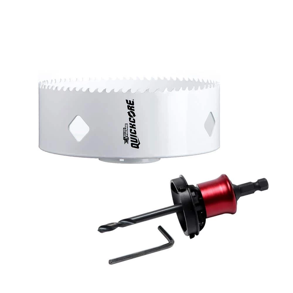 DISSTON BLU-MOL Xtreme QuickCore Hole Saws. Patented hole saw system that has up to 10 x faster core ejection. Eliminates the #1 Issue with using a hole saw of core ejection. Quick change sleeve with and open back arbor allows for fast core removal. 1 Mandrel for all sizes. The wide Diamond slot and open back design allow for increase visibility and cooling while cutting. The QuickCore design allows for immediate plug removal with no need for added tools. All sizes of hole saws available.
