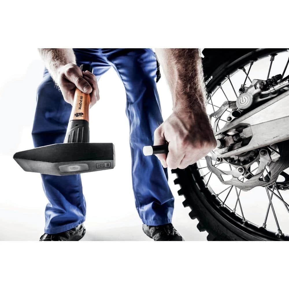 The Halder MaxxCraft is truly a unique hammer. It features an extremely high quality forged steel head, square face with cross peen. What makes this hammer different is that it has a specially designed neck and head with rubber sleeve overstrike area that gives the hammer an almost dead-blow feel to it. The rubber sleeve helps reduce vibration and bouncing. It hits like a big steel hammer but feels like a dead blow. This makes the MaxxCraft a very versatile hammer, perfect for many applications such as hitting chisels or nails to industrial and manufacturing work. It is also perfect for around the house.