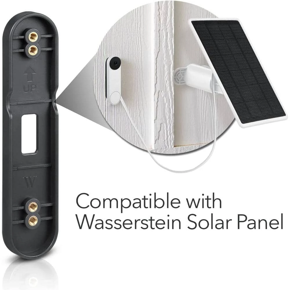 The Wasserstein No Drill Mount is another creative, yet comprehensive doorbell mount made for your Google Nest Doorbell (Battery). This no drill mount uses strong adhesive and will keep your doorbell securely in place without the need to drill. Doorbell mounting is made so effortless, no hassle, and guaranteed easy and damage free removal. If a wedge is needed, this doorbell wall plate works perfectly without a snag, and will surely improve the viewing angle you need. This wall mount has 100% durable weather resistant strong adhesive, tested to support weight up to 2.2 lbs. The wall mount is made of rugged materials that withstand changing weather conditions, suitable for outdoor use. Simply mount with adhesive tape. Install without angle mount or install with angle mount. Compatible with Wasserstein Solar Panel. Strong enough to hold up to 2.2 lbs. Compatible with Wasserstein Made for Google wedges. Compatible with Google Nest Doorbell (battery). Incompatible with Google Nest Hello Video Doorbell.