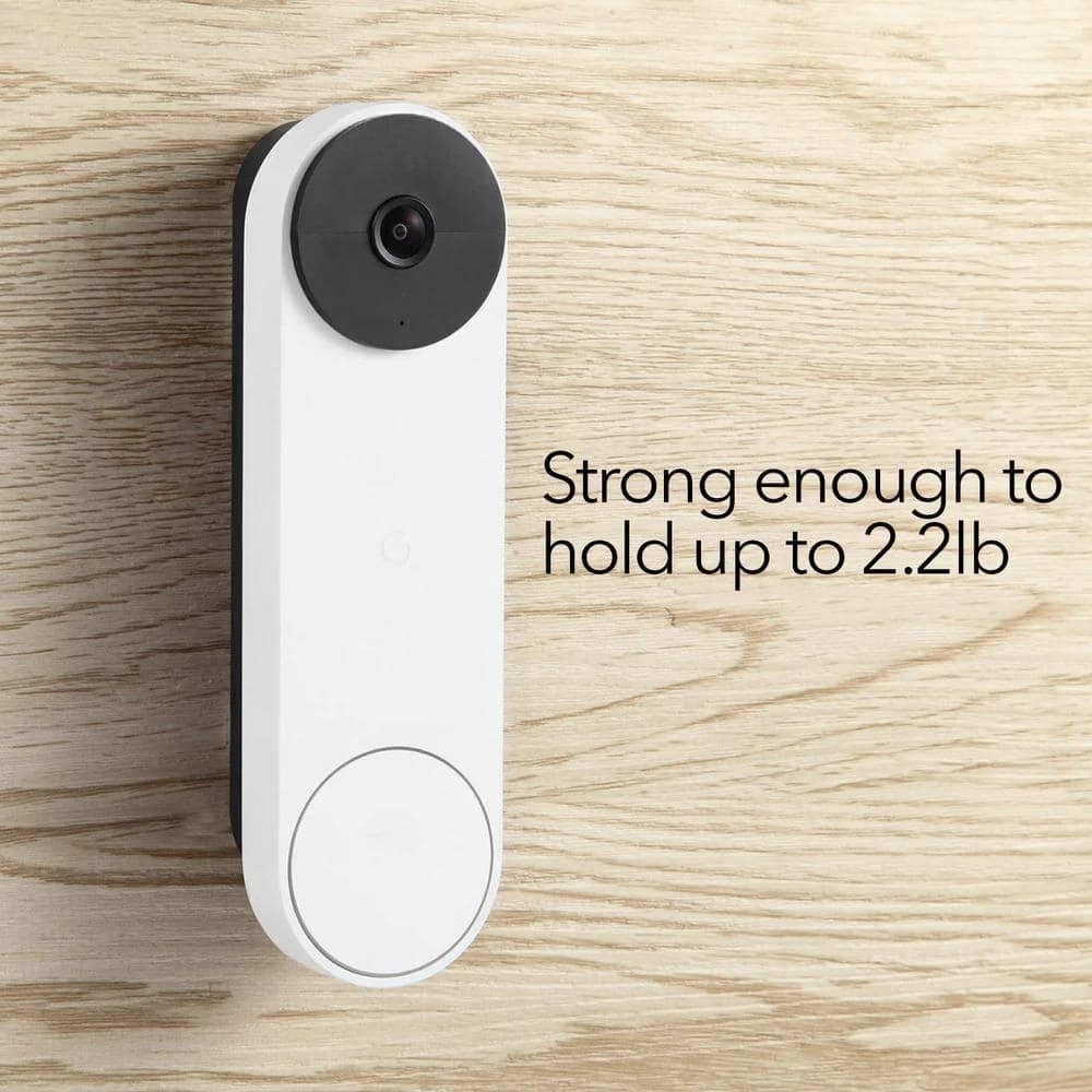 - No drilling required – attach your google nest doorbell (battery)to your wall without screws, use the adhesive tape provided to keep your doorbell securely in place without damaging the walls