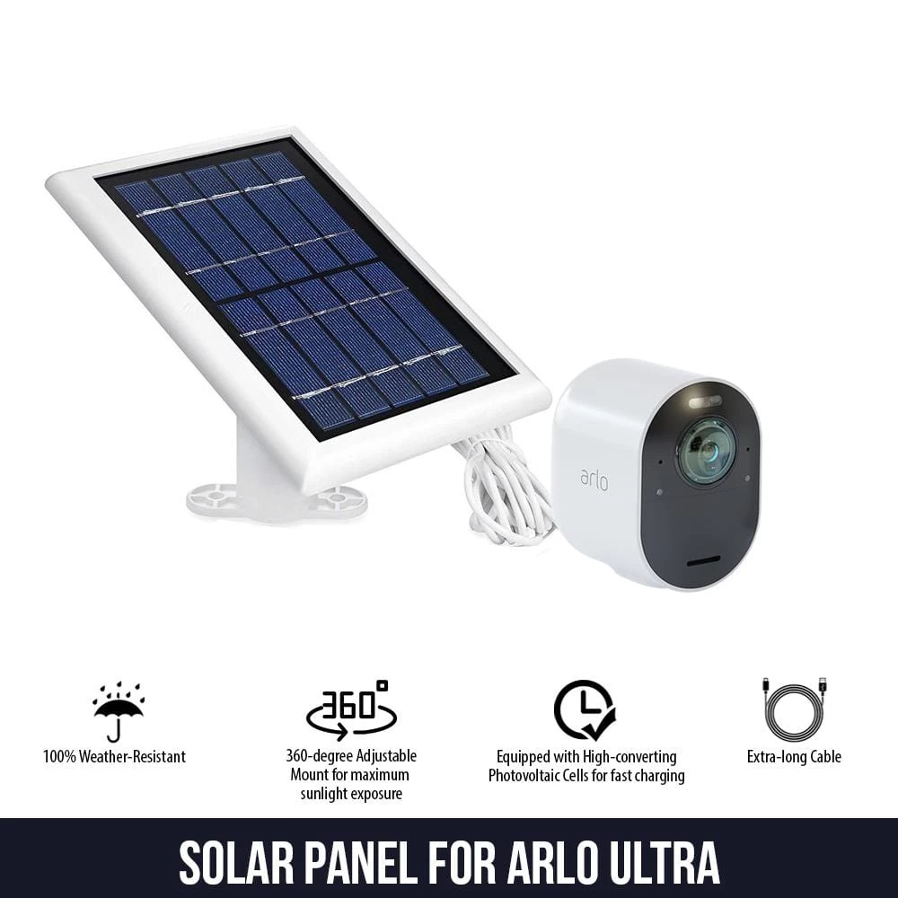- ✔ ONE PANEL TO CHARGE YOUR DEVICE – The Wasserstein Solar Panel specially designed for the Arlo Ultra/Ultra 2 & Pro 3/Pro 4 which comes with an outdoor magnetic charging cable makes sure that your surveillance camera does not run out of juice ever again. (Note: Arlo camera NOT included.)