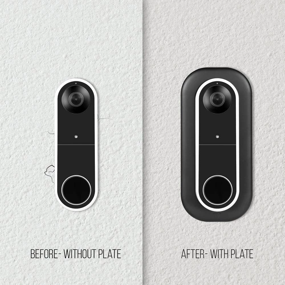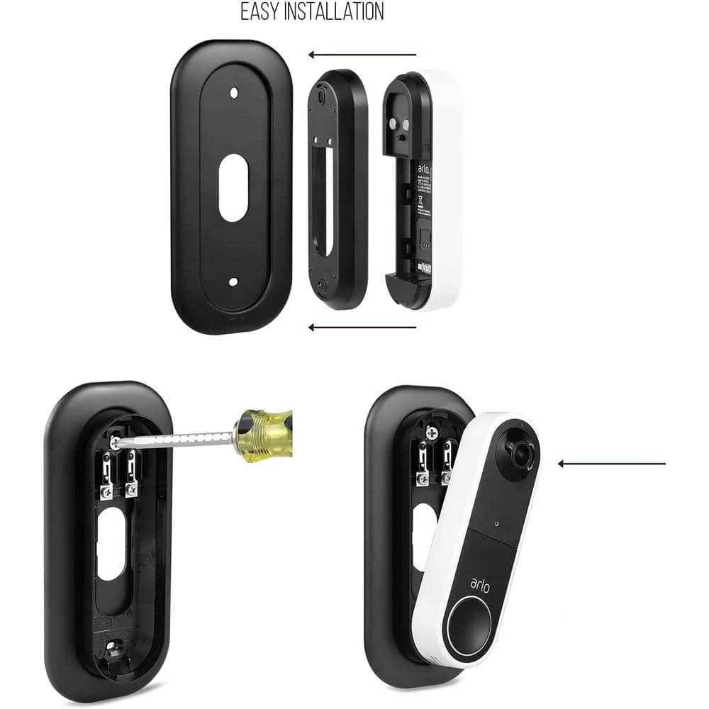 This Arlo Essential Doorbell Wall Plate provides a larger surface area allowing stable mounting on uneven surfaces. This doorbell plate covers up any marks or holes of your old doorbell nicely. The doorbell mounting plate is made of durable plastic material with quick and easy installation, mounting hardware included. This plate is only compatible with Arlo wired video doorbells.
