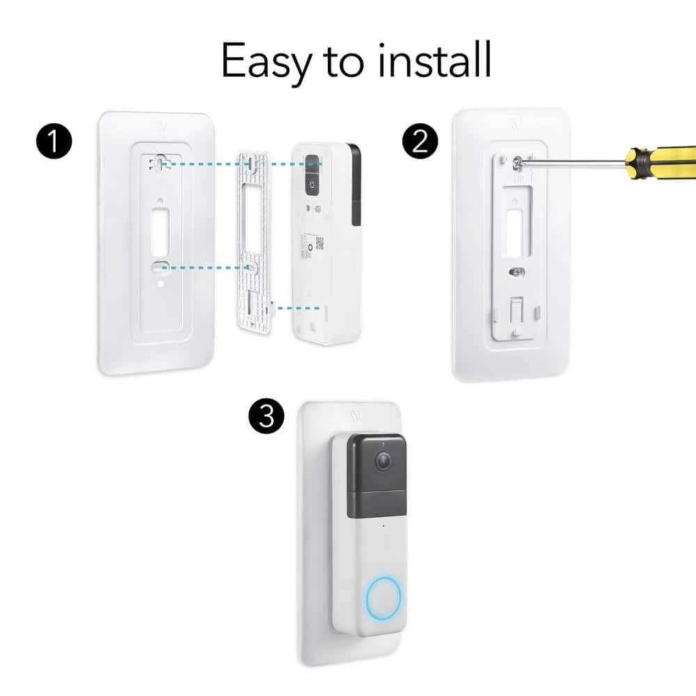 - EASY TO INSTALL – The wall plate doorbell mount is easy to install without any professional help – whether you use it by itself or with the Wasserstein angle mount – these doorbell accessories ready to use within minutes